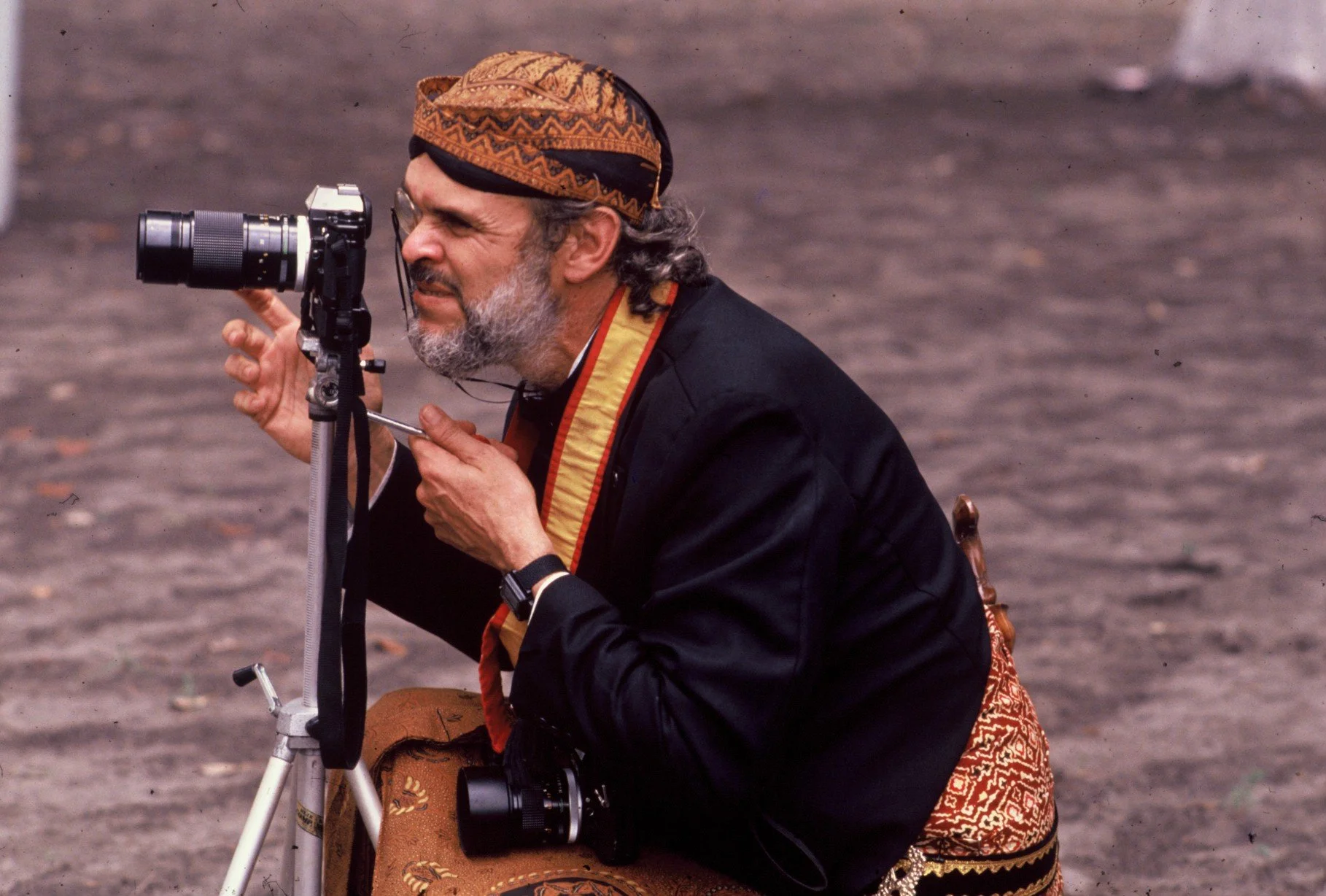 Although he learned much at the BBC he still longed for the freedom to make his own films of the wider, lesser-known parts of the planet. Thus, in 1972 when the opportunity arose to accept some production money from Ringo Starr, we took off together for nine months filming the first of our Indonesian adventures, which would lead us into a decade of wonders, a fraction of which was captured in our TV Series Ring of Fire. Not only did he carry most of the burden of raising the money, handling the business, and shooting nearly all the film himself, he did it with amazing patience and goodwill. He was much loved, and even the remotest tribal peoples recognized him as an unusually radiant and compassionate person. ‘Compassionate’ is an old-fashioned word, but what I mean here is that Lorne seemed to view all humans and animals as magical creatures deserving of special care and attention. But on the outside, Lorne was definitely eccentric. He said he grew his beard to conceal his weak chin, which was nonsense. He wore a monocle because he said he was only nearsighted in one eye, and a monocle was harder to break and easier to carry spares for than glasses, which wasn’t nonsense. He even went one whole London winter, to the astonishment of his colleagues at Ringo’s Apple Company, where he was editing the first version of Ring of Fire, wearing no shoes at all, even in the snow. It was part of his tendency to test his limits. On another occasion, after several weeks of lecturing aboard the Lindblad Explorer, enjoying considerable comfort and adulation, he had himself dropped off in the remote island of Savu, from where he eventually returned home to Bali, much thinner, via a series of local, open sailing boats piloted by the Bajo tribe.
